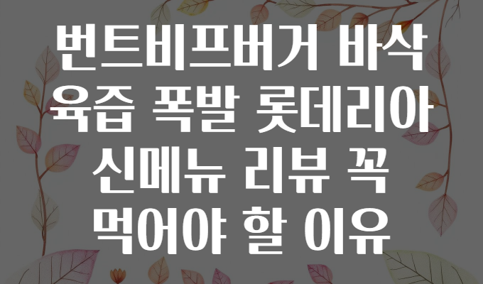 🍔 번트비프버거, 롯데리아 신메뉴 완전 정복! 바삭함과 육즙 폭발 그 비밀은?