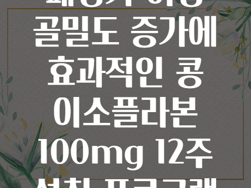 🧐 폐경기 이후 여성들이 가장 많이 걱정하는 골밀도 저하 문제! 사실, 골밀도 감소는 나이가 들면서 자연스럽게 찾아오지만, 그 정도와 속도는 충분히 관리할 수 있다는 사실 알고 계셨나요? 오늘은 폐경기 여성 건강의 핵심, 바로 콩 이소플라본 100mg 12주 섭취 프로그램으로 골밀도를 효과적으로 높이는 방법을 쉽고 재미있게 알려드릴게요! 😄🌸